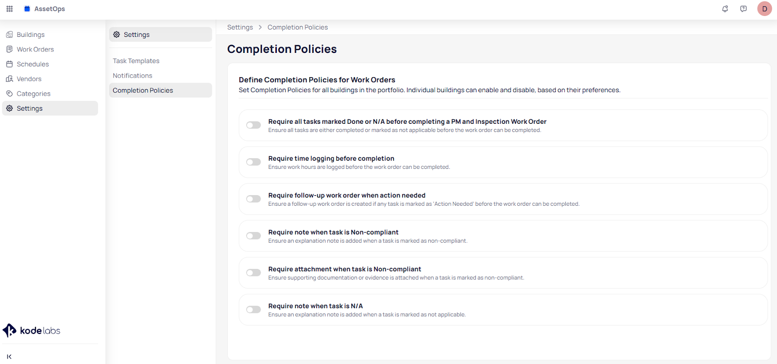 Completion Report: Define the rules and required steps that must be fulfilled for a work order (regardless of type, such as maintenance or inspections), to be officially marked as completed