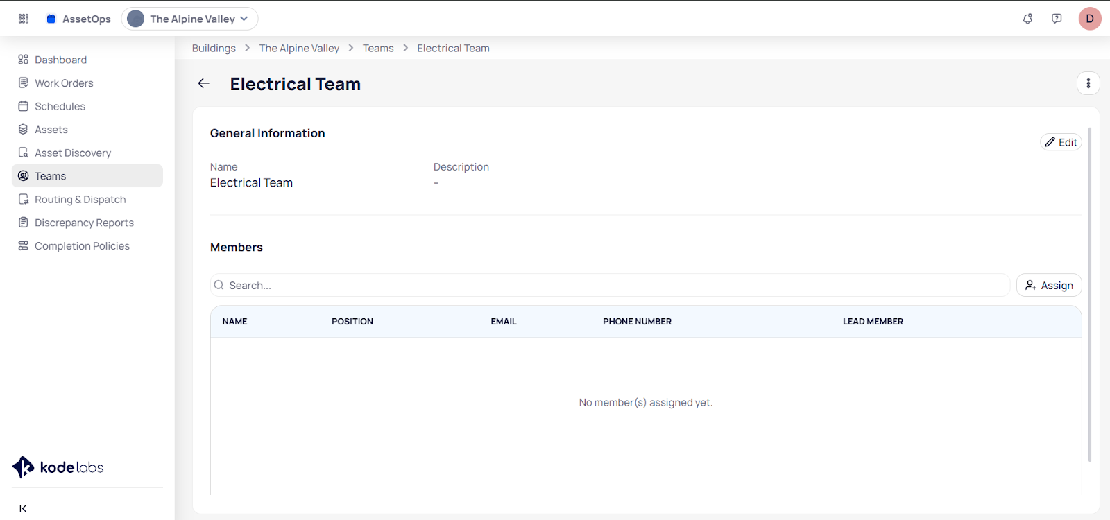 Using teams helps ensure that work orders are automatically assigned to the right people, making maintenance more efficient and organized across smart building operations.