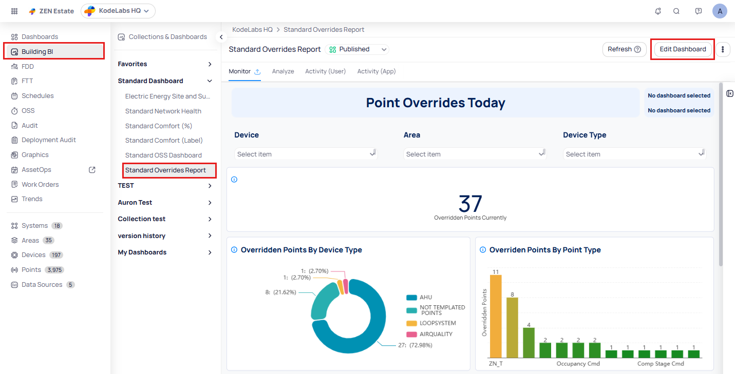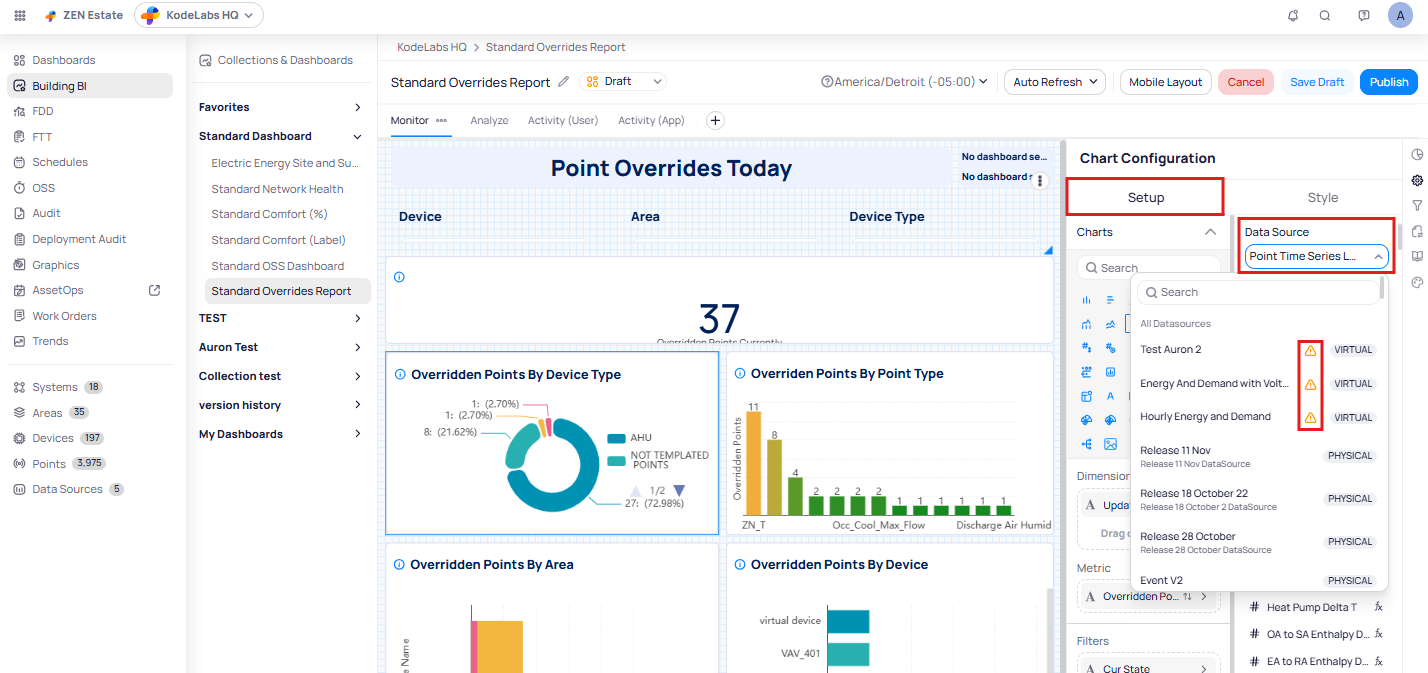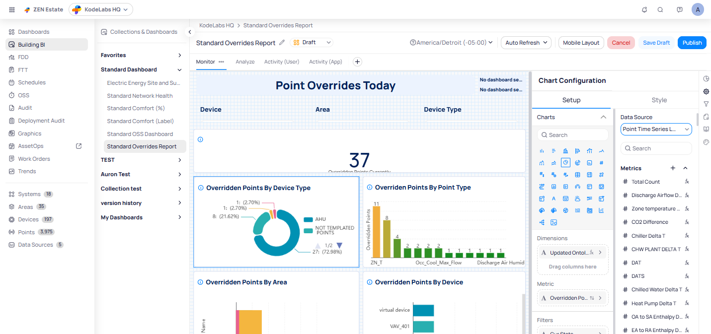 Click on one of the charts (e.g., Overridden Points By Device Type).