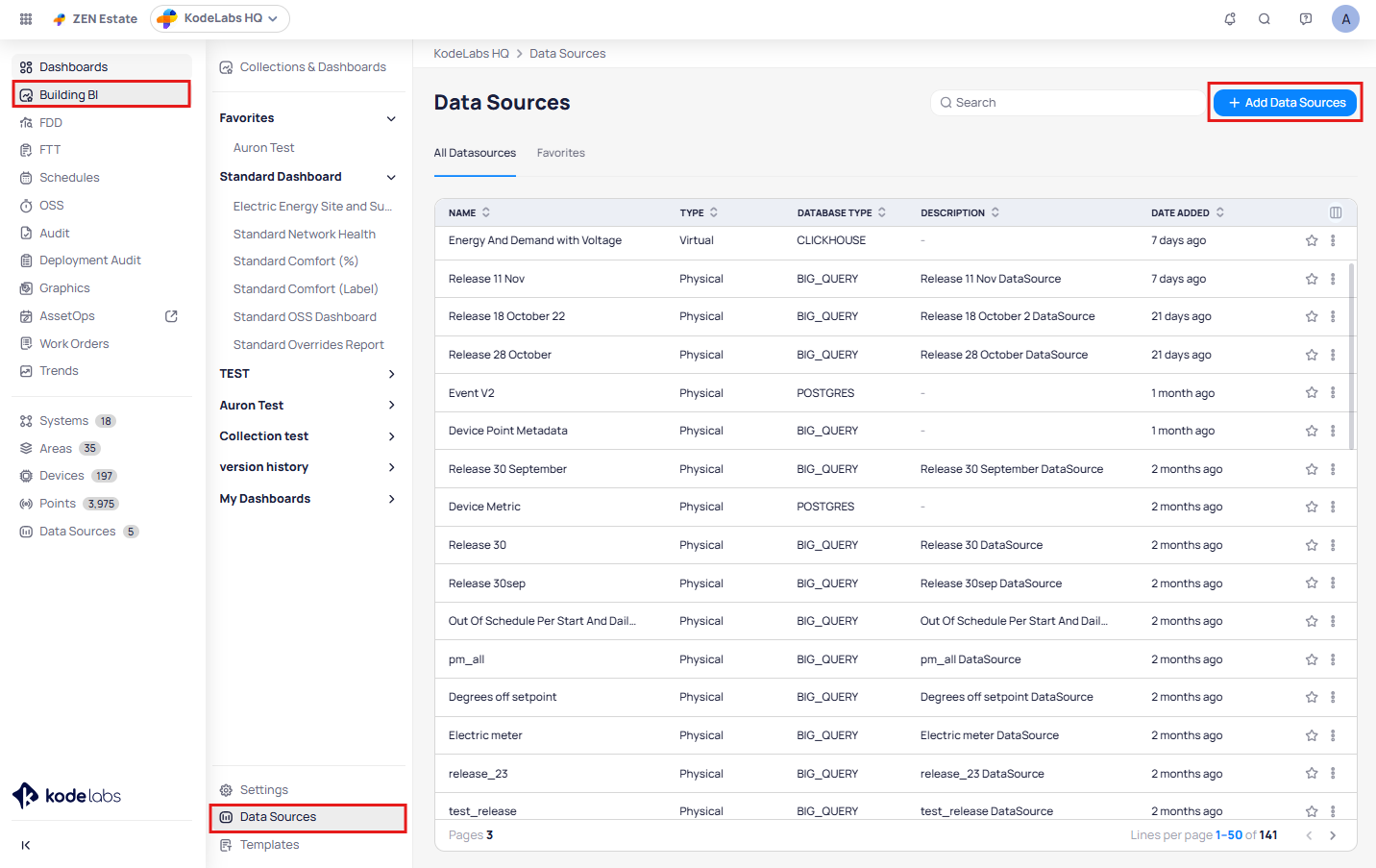 To see the number and status of all integrated systems you can rely on Data Sources. Data Source is a network controller which interconnects multiple devices with KODE OS. Navigate to a building of your choice through the Sites feature in the ...