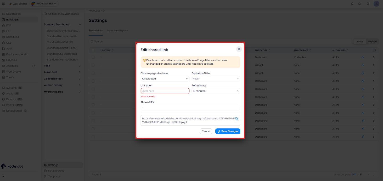 The Building BI tool is a feature within our platform that allows you to view data on a dashboard and in a chart form. This data can provide valuable insights into the performance of your building management solution, helping you make informed ...