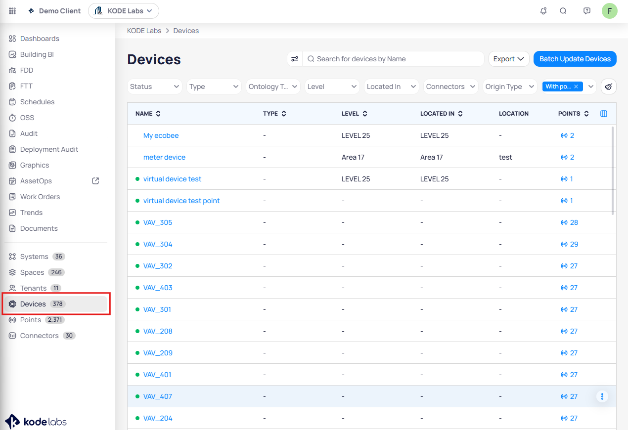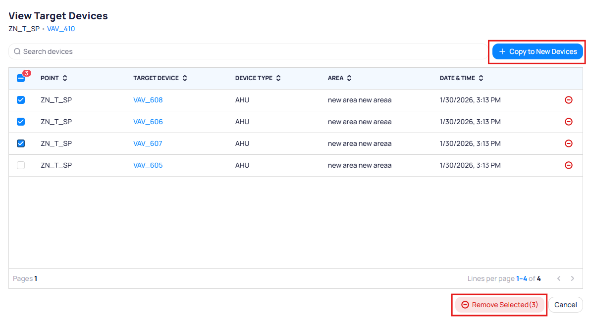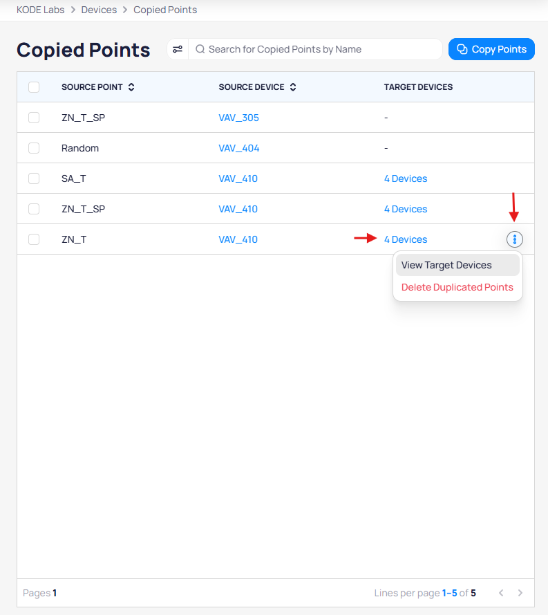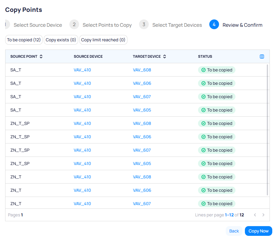 Navigate to Devices → Batch Update Devices → Copied Points and locate the duplicated point.