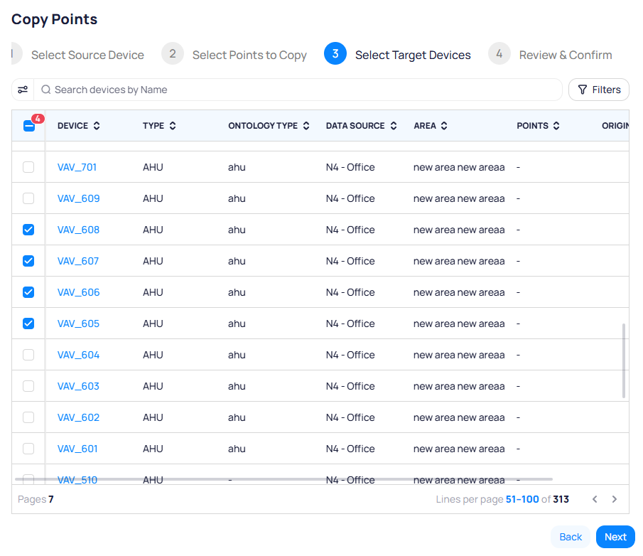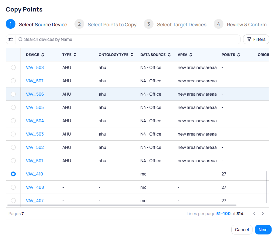 Select Source Device - choose the device you want to copy points from (for example, VAV-410).
