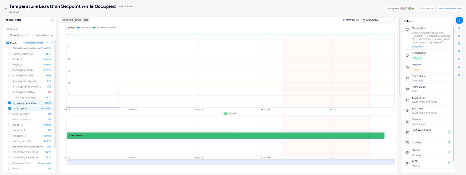 These trends provide immediate insight into why the event was triggered and whether conditions have stabilized.