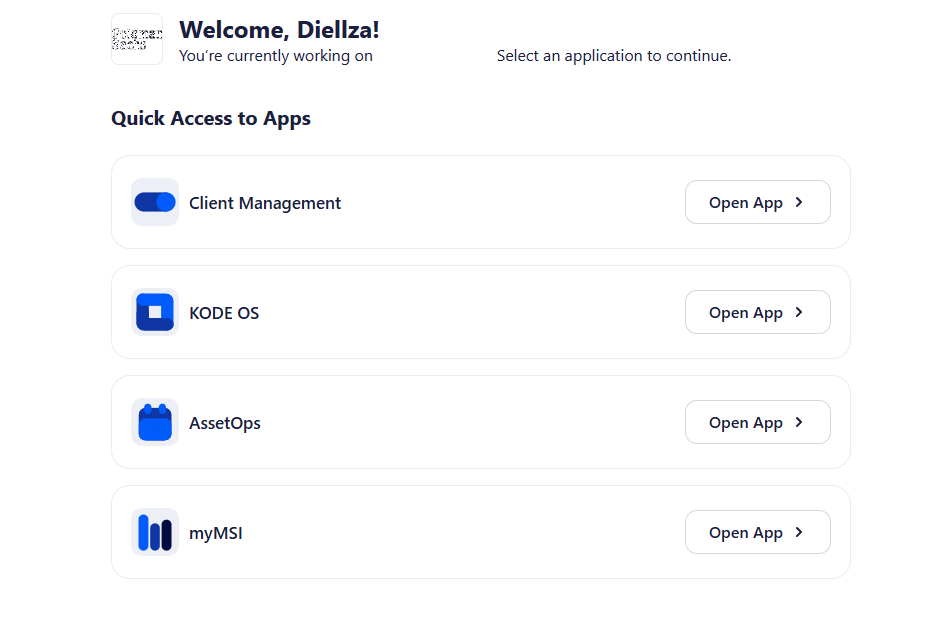 On the Launchpad landing page, you will see a list of available applications. This centralized view is designed to give you immediate access to all your KODE products.