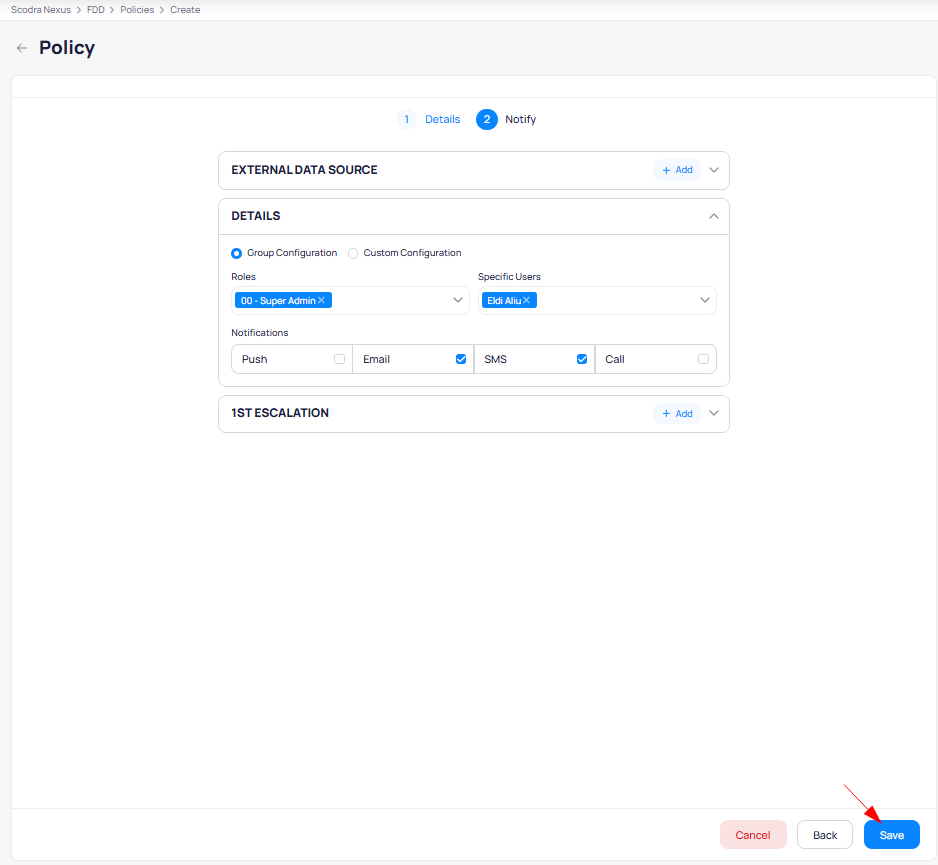 Once all details are configured, you are ready to create the routine for this notification policy. After completing the routine, click Save, and your notification policy will be active.