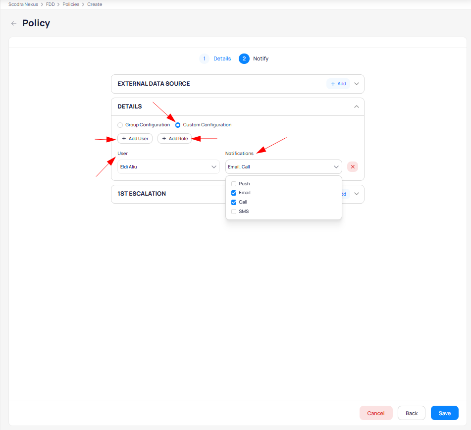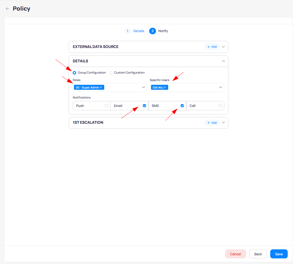 Group Configuration: Assign a role or specific user(s) who will receive the notification.