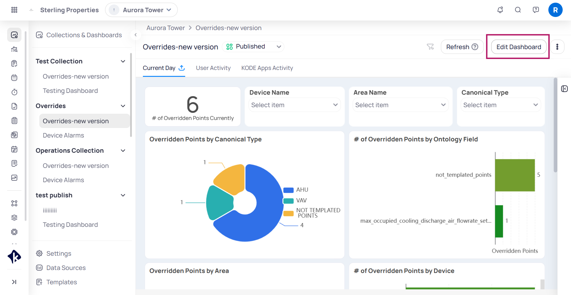 Go to the desired dashboard (e.g., Standard Overrides Report) and click Edit Dashboard.