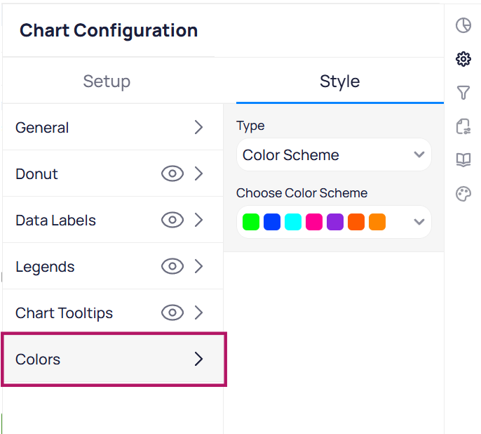Click on the specific widget you want to customize to open the Chart Configuration menu.